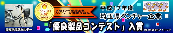| アイテック自転車用傘ホルダーは、製品自体の利便性と、普段目立ちにくい構造、コンパクトなパッケージ等が評価され「平成17年度ベンチャー企業優良製品コンテスト」で入賞しました。 |